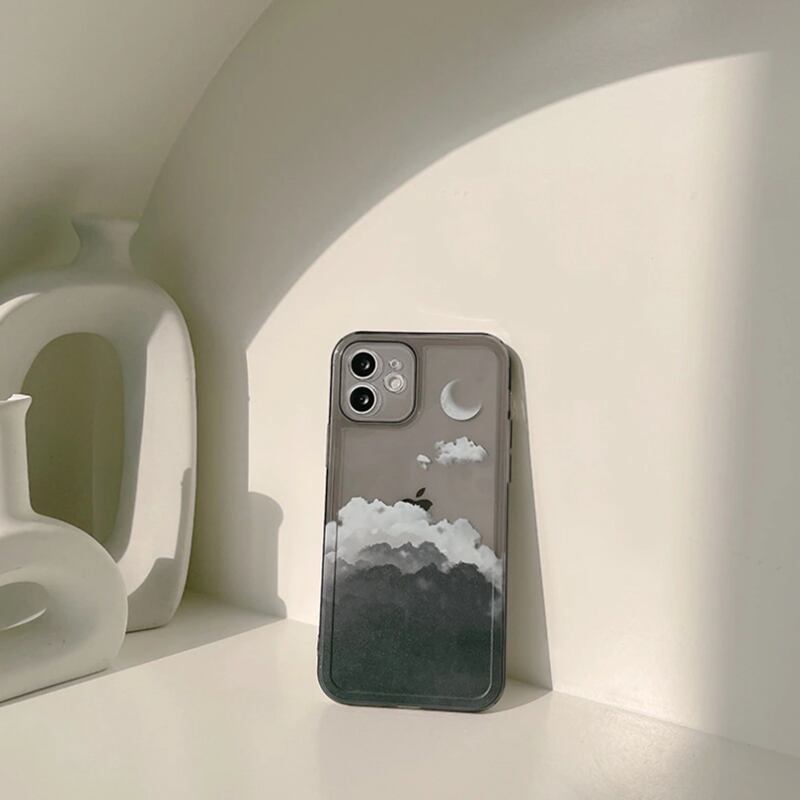 【iPhone14シリーズ対応】ブラック ムーン アート iPhoneケース(IC192)