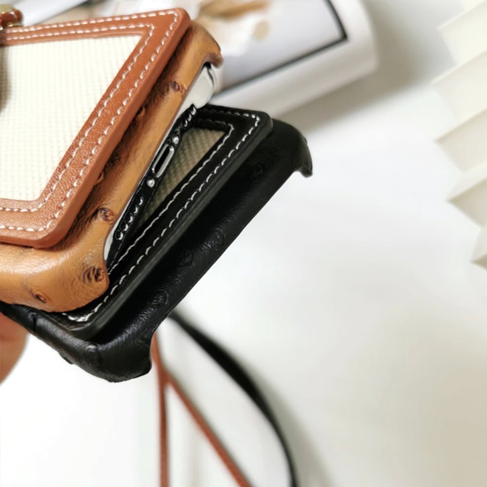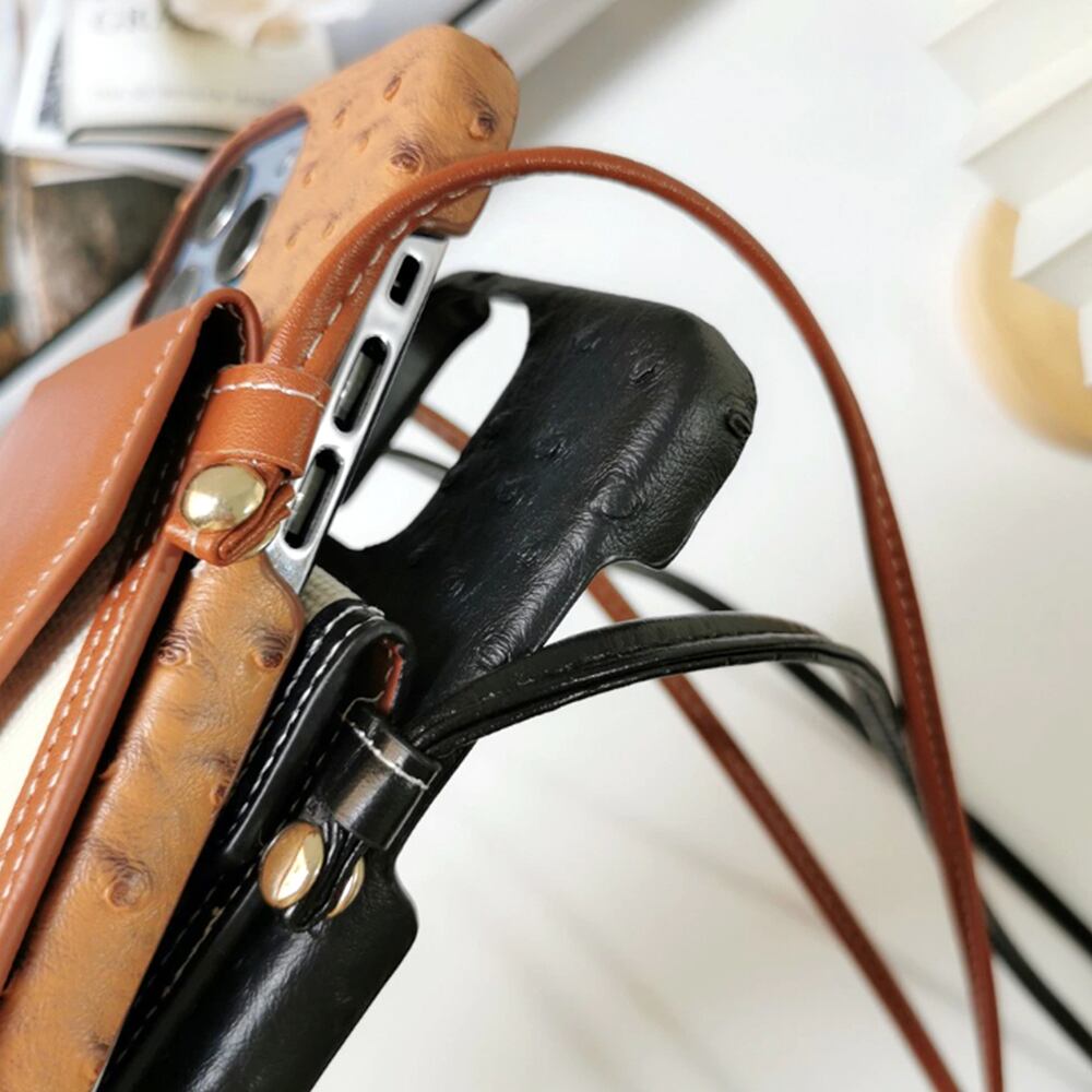 【iPhone13シリーズ対応】カードケース付 オーストリッチ風 ショルダーストラップ iPhoneケース(IC260)