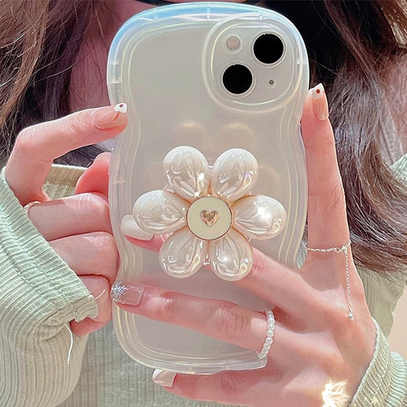 パールフラワーグリップ付 iPhoneケース(IC266)
